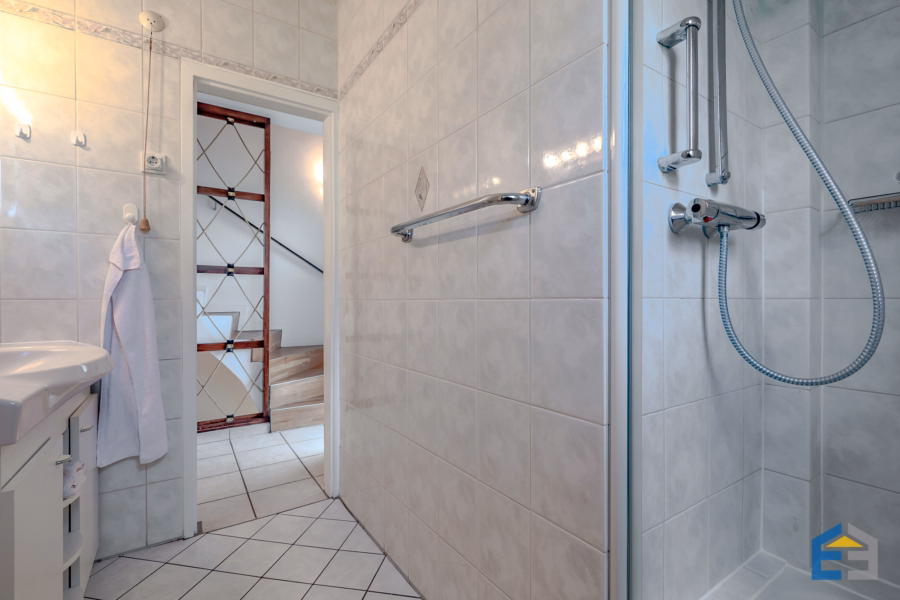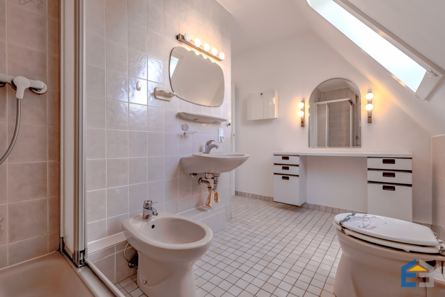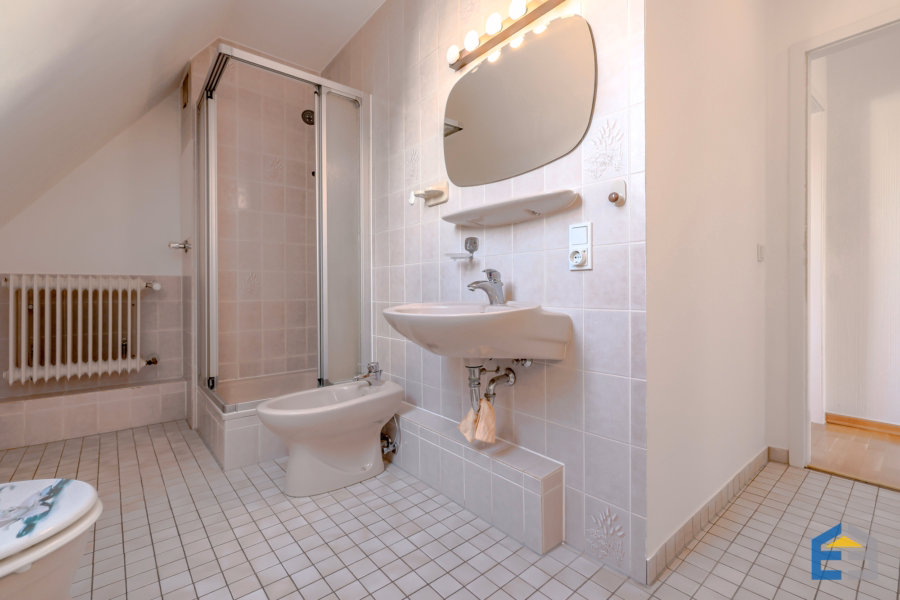 Sanitärausstattung: Zwei Duschbäder – jeweils mit Bidet und zeitloser Ausstattung
