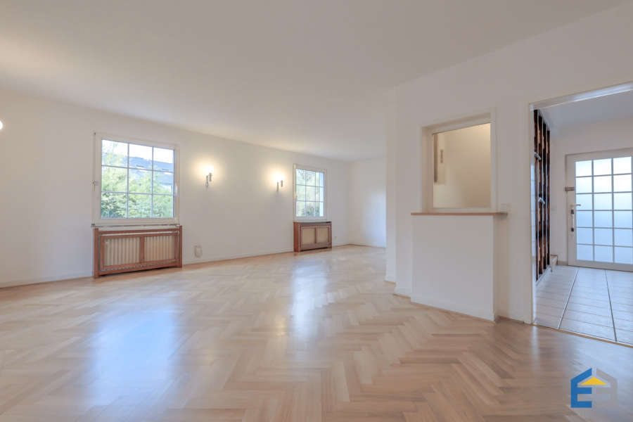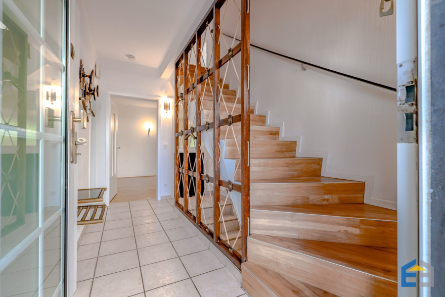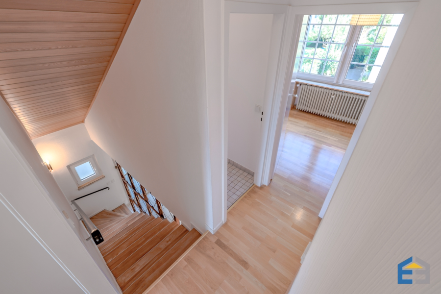 Böden: Parkett im Wohn- und Obergeschoss, hochwertige Fliesen im EG und Keller